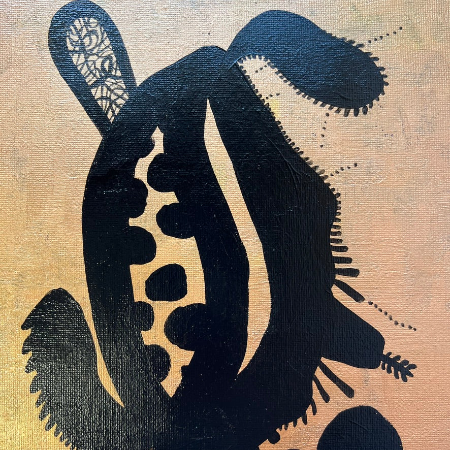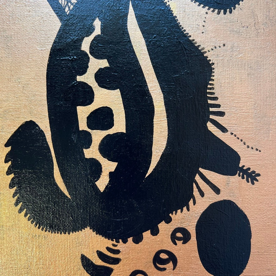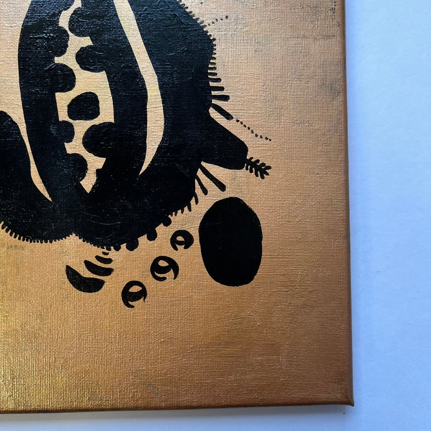 この作品「Cosmic Microcosm」は、微生物のようなかたちをした黒いシルエットの中に、無限に広がる宇宙を宿すイメージで描きました。自然体であることへの憧れ、そして自然や宇宙に対する畏敬の念——それは日々の中で、ふとした瞬間に芽生える静かな祈りのようなものです。